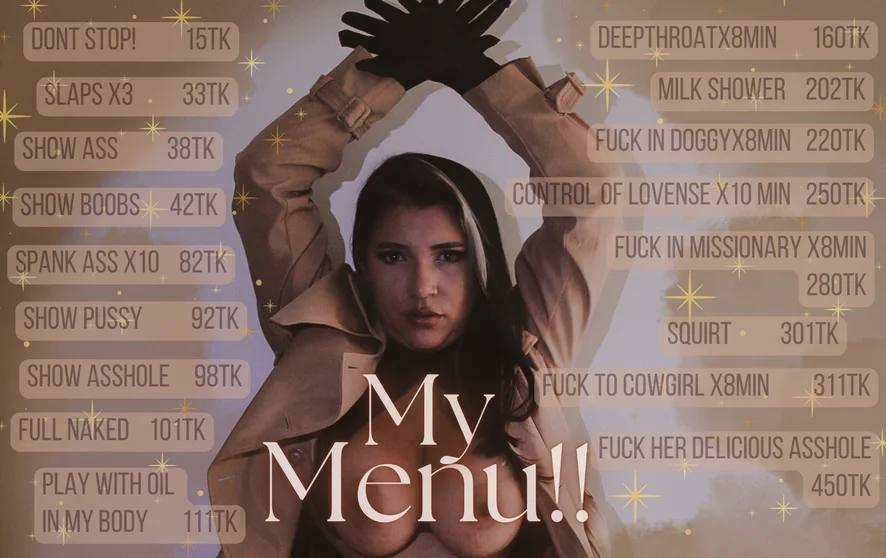 Doggy Style, Ahegao, Spanking, Erotic Dance, Striptease, Smoking, Deepthroat, Tittyfuck, Oil Show, Fingering, Ass to Mouth, Dildo or Vibrator, Humiliation, Anal Toys, Sex Toys, Nipple Toys, Blowjob, Masturbation, Handjob, Twerk, Dirty Talk, Shower, Orgasm, Squirt, Hardcore