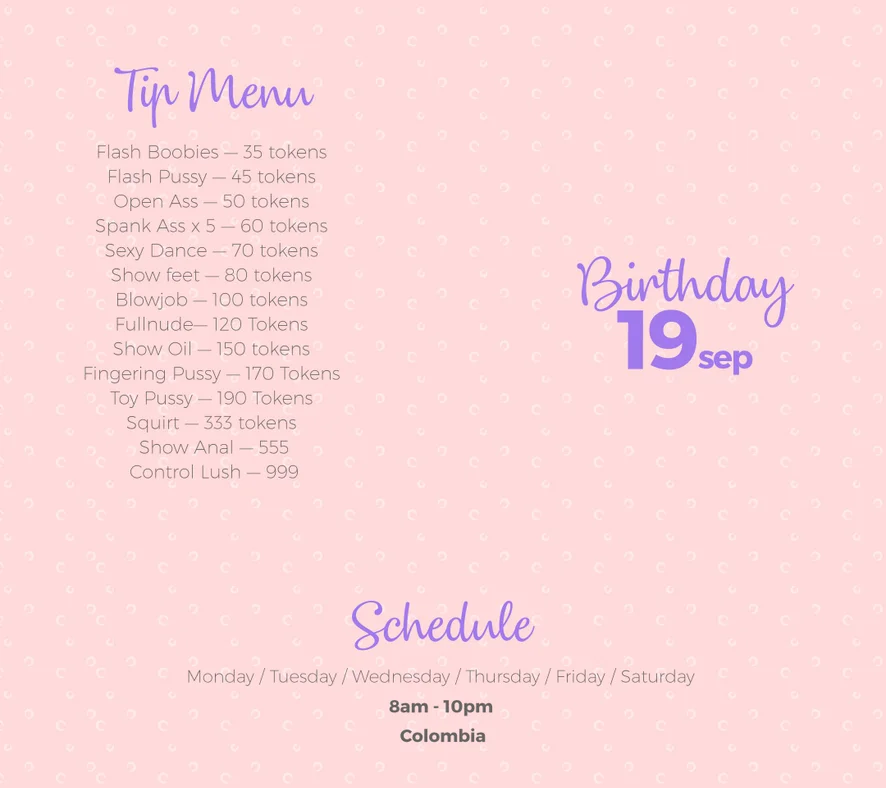 Masturbation, Blowjob, Deepthroat, Striptease, Fingering, Dildo or Vibrator, Erotic Dance, Flashing, Handjob, Upskirt, Cowgirl, Spanking, Nipple Toys, Tittyfuck, Foot Fetish, Hardcore, Sex Toys, Squirt, Oil Show, Doggy Style, Orgasm, Twerk
